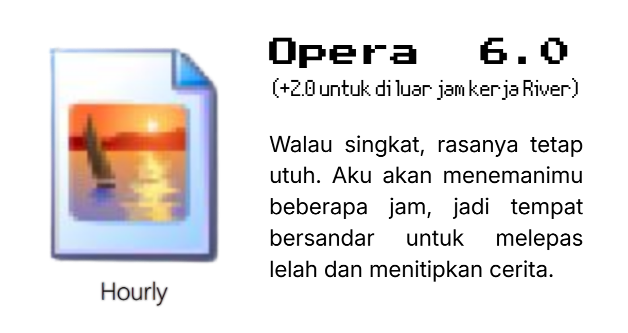 1. Aku akan menemanimu dari pukul 10 pagi, hingga 10 malam menutup hari.2. Romansa untuk kamu yang telah berusia 20 tahun ke atas, sementara di bawah itu aku memilih hubungan yang saling menjaga, seperti saudara (platonic)3. Aku nyaman dalam hubungan yang sederhana, seimbang, dan tidak menguras ruang satu sama lain. (Low-mid maintenance)4. Pengisian formulir dilakukan setelah ketersediaanku dikonfirmasi melalui manajer atau jadwal yang tertera.5. Aku tersedia di Twitter/X, Telegram, dan Discord.6. Aku menyambut siapa pun, dari gender apa pun, dalam ruang yang aman dan saling menghargai.7. Aku tidak melayani layanan imajinasi, plotting, VN atau OTP dalam bentuk apa pun.8. Setiap layanan memiliki durasi yang jelas: minimum 1 jam dan maksimum 4 hari. Setelah sesi berakhir, aku memberi ruang jeda tiga hari sebelum penyewaan berikutnya dapat dilakukan.9. Aku dengan senang hati menerima foto atau pesan suara darimu. Namun, aku menjaga kehidupan pribadiku tetap privat dan tidak selalu membalas dengan hal yang sama.10. Pembayaran dilakukan sebelum sesi dimulai. Penjadwalan ulang dapat dilakukan, namun pembatalan tidak dapat dikembalikan. Oleh karena itu, pastikan formulir diisi dengan jujur, lengkap, dan sesuai.11. Setelah masa sewa berakhir, aku berharap kamu bersedia memberikan ulasan yang jujur. Masukan tersebut membantu aku menyesuaikan pengalaman ke depannya agar menjadi lebih baik.12. Pengembalian dana hanya dapat dilakukan dalam kondisi tertentu dan perlu didiskusikan terlebih dahulu dengan manajer.13. Apabila batasan yang ada tidak dihormati, atau komunikasi tidak berjalan dua arah, aku memiliki hak untuk menghentikan sesi tanpa persetujuan lebih lanjut.14. Magic Keyword River : Mie ayam.15. Aku berharap ruang pribadiku dapat dihormati, dan batasan yang ada tetap dijaga.16. Aku mohon jumlah pesan dalam satu rangkaian dibatasi hingga maksimal 20, agar komunikasi dapat berjalan dengan nyaman.17. Segala perasaan yang muncul setelah sesi selesai bukan merupakan tanggung jawabku.18. Akun yang diterima terbatas pada kategori BA, CA, RP, dan tanpa label. Akun personal atau akun modifikasi tidak diperbolehkan.